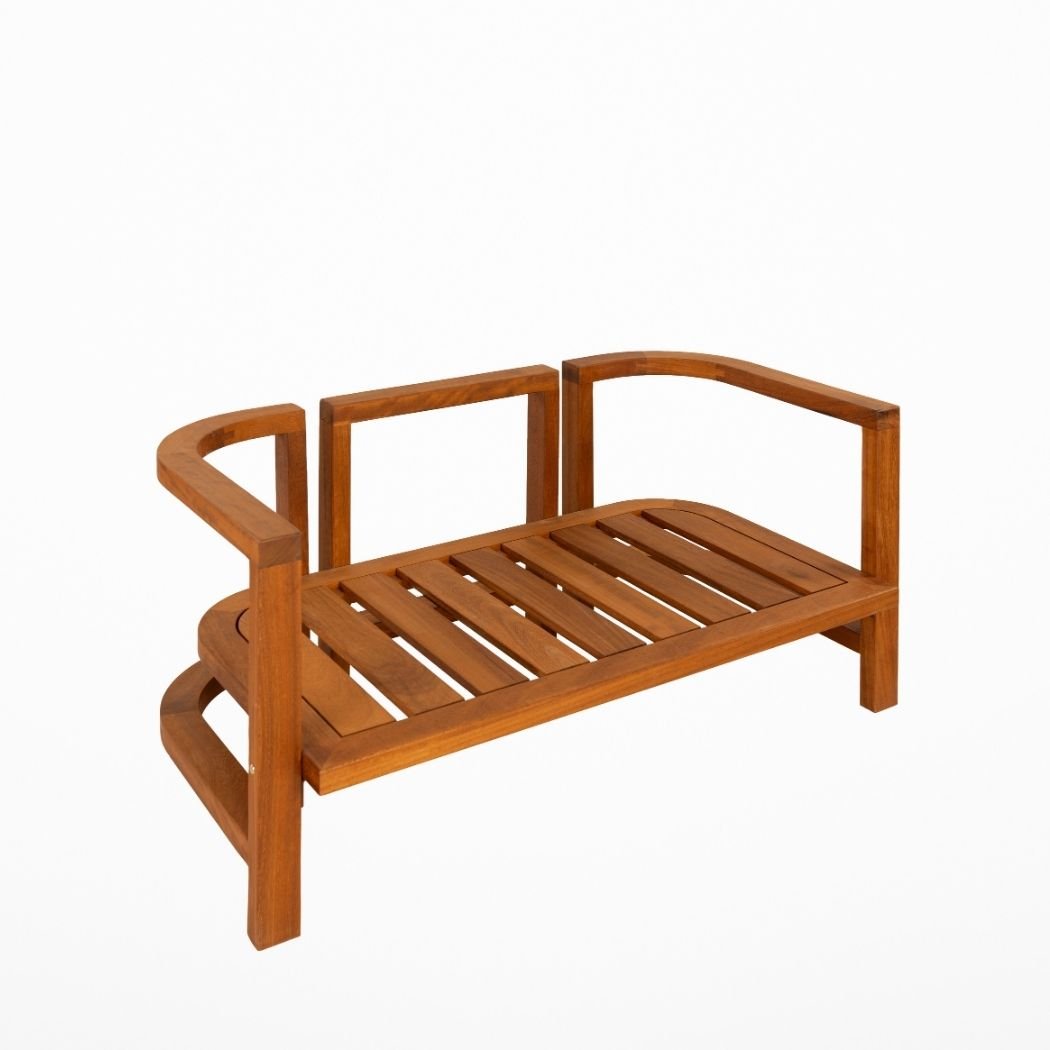Likya İkili Koltuk, tekil ve grup olarak kullanılabilen İroko ağacın el işçliği ile imal edilmiş, dayanımı sağlamlığını yıllarca koruyabilen dış mekan için kullanıma uygun güneşe ve suya dayanıklı koltuktur.