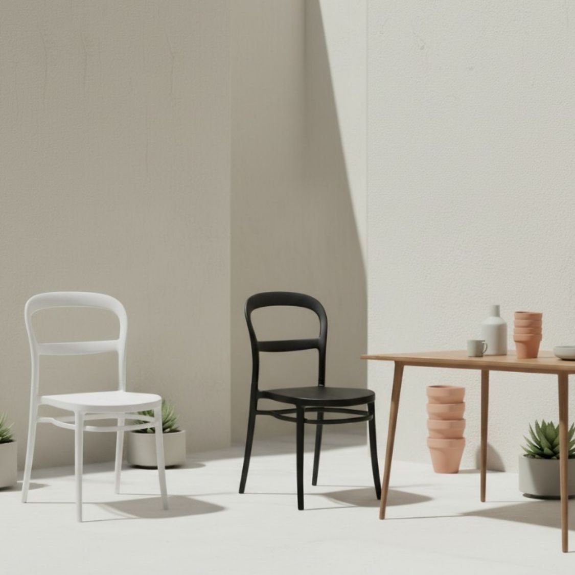 Dayanıklılığı şık tasarımla birleştiren bu modern ve şık sandalye, yüksek kaliteli polipropilen oturma yeri ve polikarbonat sırttan üretilmiştir.