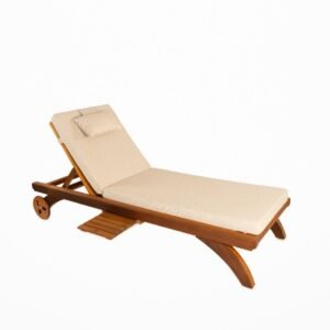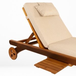 Olympos Tekerlekli Şezlong, İroko ağacın el işçliği ile imal edilmiş, dayanımı sağlamlığını yıllarca koruyabilen dış mekan için kullanıma uygun güneşe ve suya dayanıklı şezlongdur.