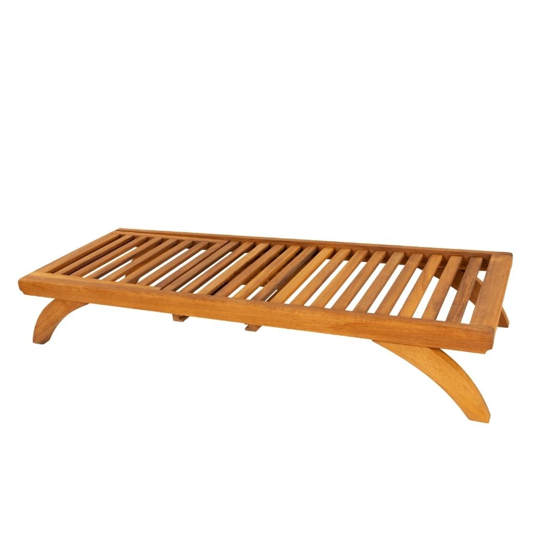 Olympos Tekerleksiz Şezlong, İroko ağacın el işçliği ile imal edilmiş, dayanımı sağlamlığını yıllarca koruyabilen dış mekan için kullanıma uygun güneşe ve suya dayanıklı şezlongdur.