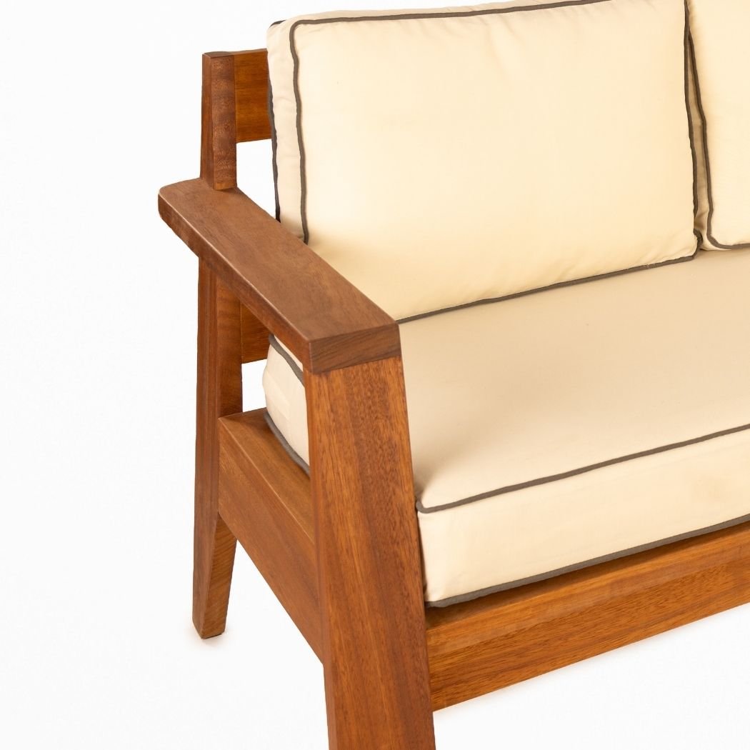 Perge Üçlü Koltuk, tekil ve grup olarak kullanılabilen İroko ağacın el işçliği ile imal edilmiş, dayanımı sağlamlığını yıllarca koruyabilen dış mekan için kullanıma uygun güneşe ve suya dayanıklı koltuktur.