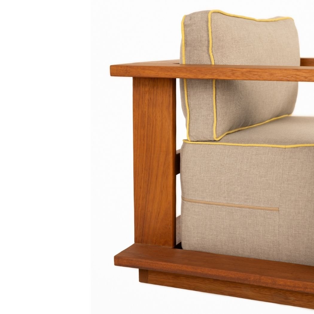 Selge Tekli Koltuk, tekil ve grup olarak kullanılabilen İroko ağacın el işçliği ile imal edilmiş, dayanımı sağlamlığını yıllarca koruyabilen dış mekan için kullanıma uygun güneşe ve suya dayanıklı koltuktur.