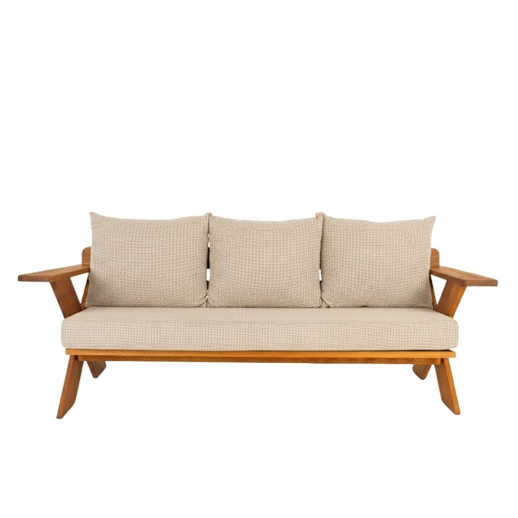 Termessos Üçlü Koltuk, tekil ve grup olarak kullanılabilen İroko ağacın el işçliği ile imal edilmiş, dayanımı sağlamlığını yıllarca koruyabilen dış mekan için kullanıma uygun güneşe ve suya dayanıklı koltuktur.